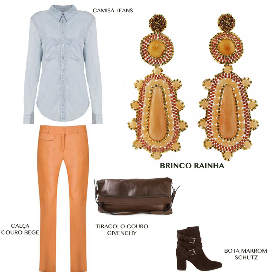 Para esta segunda feira de maio, escolhemos um look arrumadinho, ótimo para ir trabalhar e já no “mode” das botas invernais.. a calça de couro deixa a proposta mais com cara de trabalho e o brinco quebra e mantêm o ar estiloso! O brinco rainha vai desde roupas dia a dia até um super vestido de festa!